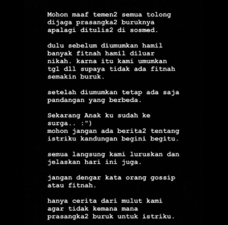 diumumkan hamil banyak fitnah hamil diluar nikah. Karna itu kami umumkan tgl
